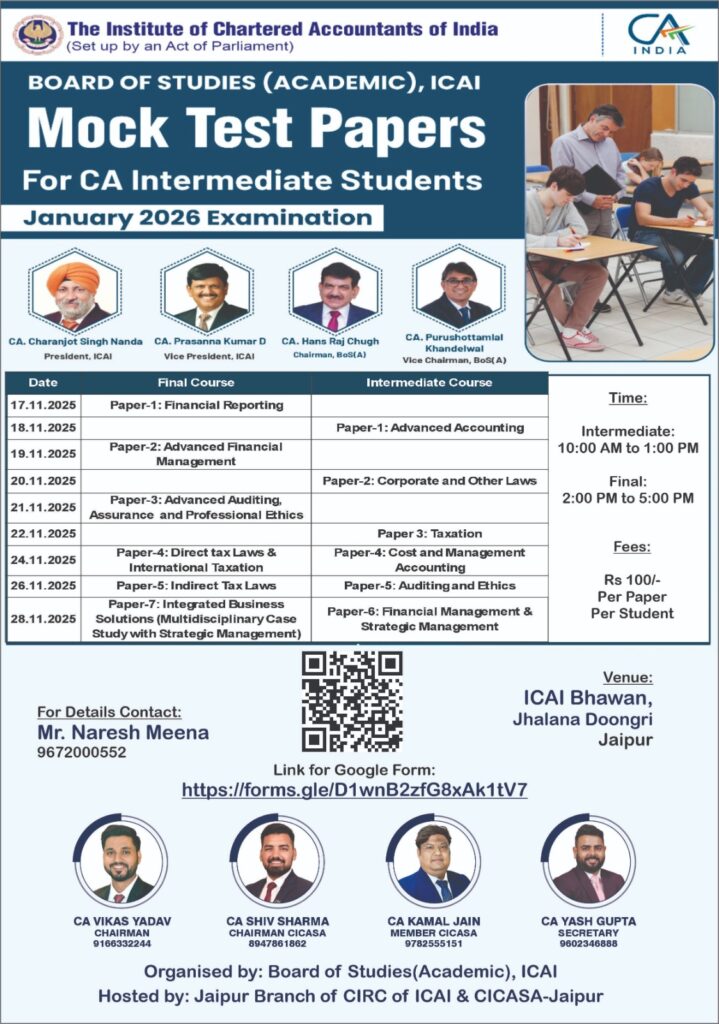 Mock Test Papers Series – I for CA Foundation, CA Intermediate and CA Final Students appearing in January 2026 Examinations