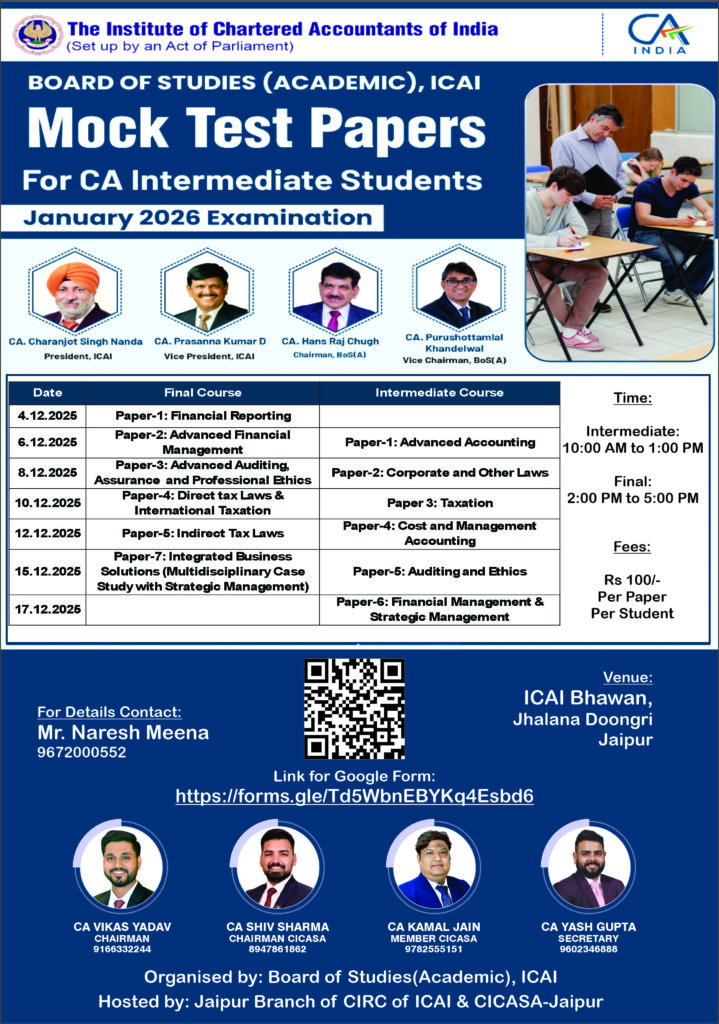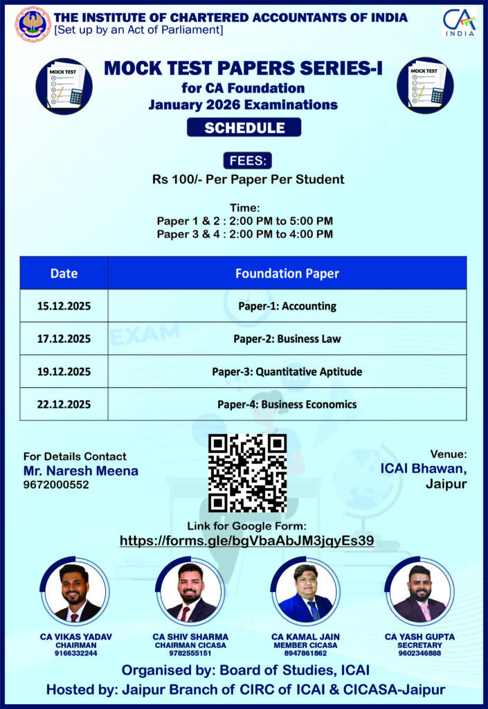 Mock Test Papers Series – I for CA Foundation & Mock Test Papers Series – II for CA Intermediate and CA Final Students appearing in January 2026 Examinations