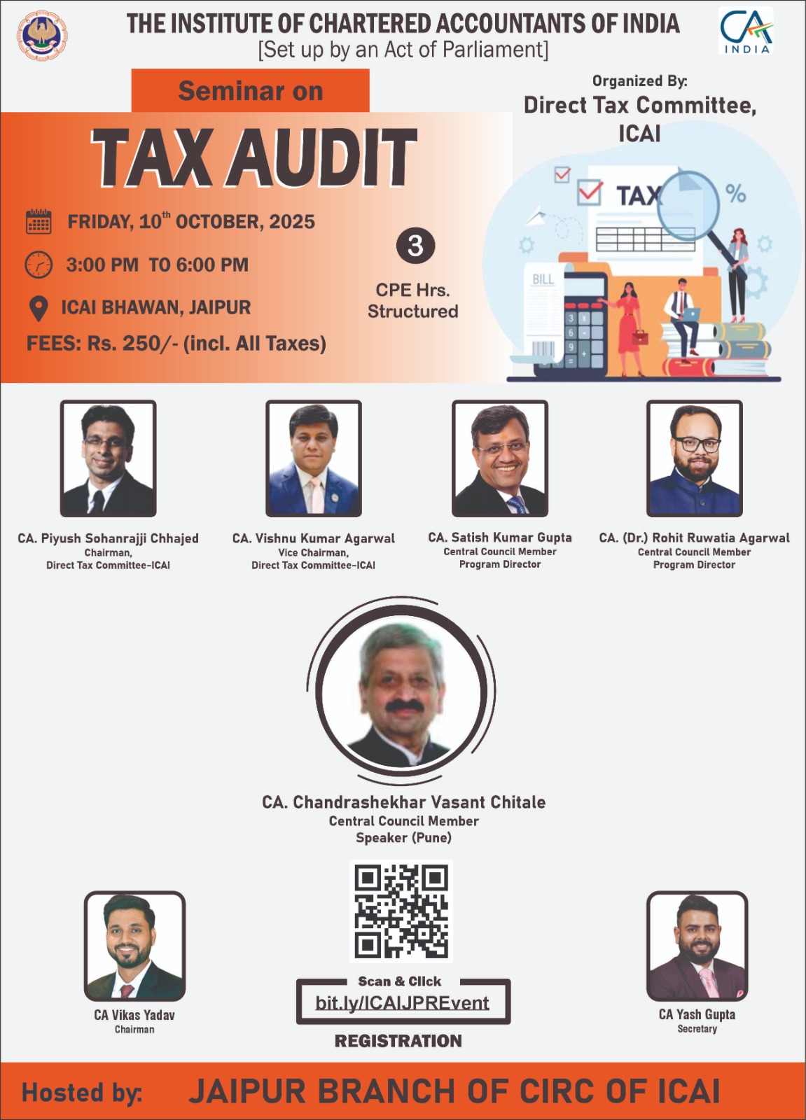 3 CPE Seminar on Tax Audit on 10-10-2025 3:00PM to 6:00PM at ICAI Bhawan, Jaipur